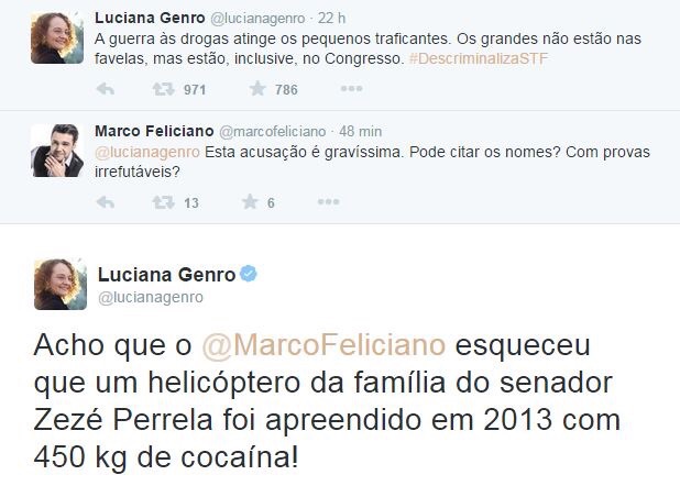 Luciana Genro cita ‘Helicoca’ de Perrela em treta com Feliciano no Twitter